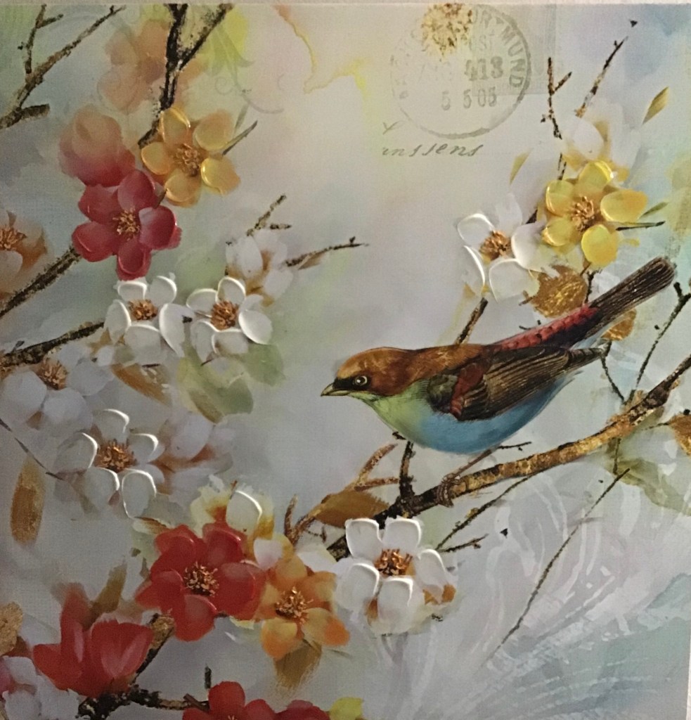 A newly wed husband gifted to his beautiful blooming bride a painting of a bird and flowers with such elan as of elegant pride.